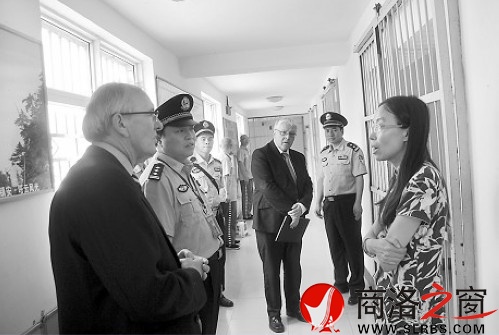 本網訊 (方由朝 陳斌)八月二十日,英國國際監獄研究中心代表團一行四人來商州監獄進行友好訪問。外賓在參觀了服刑人員伙房、教學樓、監舍、習藝車間、禁閉室等場所后,感慨地說,我們再也不用擔心中國監獄的超時勞動和人權問題了。