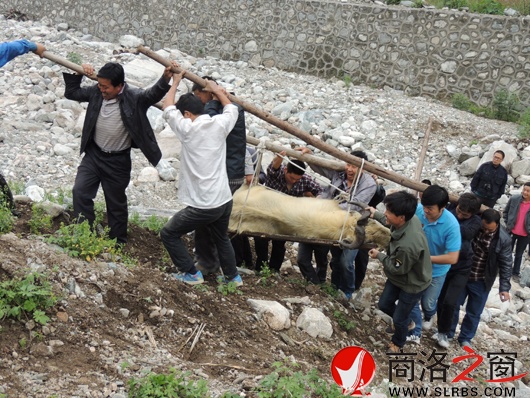 當地一名中年婦女說,這頭羚牛兩天前已經在上面的溝邊活動,還跑到縣水務局在這里開建的水利工地來了,民工把它趕進山溝,可是昨晚工地放工后,羚牛沿河谷又跑到這里,被攔河壩擋住了,不然的話它可能沿河道跑到下邊去了。