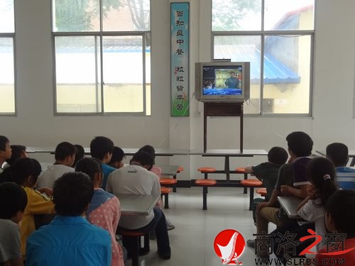 圖為柞水縣干佑中學(xué)近千名師生同步收看中央電視臺直播太空授課實況(張曉鋒 項小華)