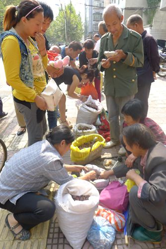 商洛日報訊(記者 張瑞)九月十八日,在中秋佳節前夕,很多外地游客來商洛旅游觀光,除了農家樂大受歡迎之外,當季特色農產品也很受游客青睞。記者在市場看到板栗銷售情況十分火熱,根據板栗的品質不同,每公斤銷售價格大約在七到十元左右。
