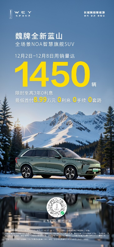 作為今年長(zhǎng)城汽車集團(tuán)全力打造的誠(chéng)意之作,魏牌全新藍(lán)山搭載了真影院、真冰箱、真沙發(fā)等諸多越級(jí)配置,為家庭用戶提供了一種“升級(jí)而非妥協(xié)”的全新選擇,成為消費(fèi)降級(jí)時(shí)代的破局者。據(jù)最新周銷量數(shù)據(jù)顯示,在12月2日至8日,全新藍(lán)山周銷量1450輛,穩(wěn)步增長(zhǎng),并強(qiáng)勢(shì)趕超漢蘭達(dá)、皇冠陸放等老牌實(shí)力車型,這不僅證明了其強(qiáng)勁的市場(chǎng)競(jìng)爭(zhēng)力,也再次展現(xiàn)了其對(duì)消費(fèi)需求的精準(zhǔn)把握。