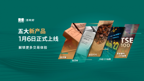 為了滿足投資者的多樣化需求,百利好于1月6日正式推出五種全新交易產(chǎn)品,其中包括現(xiàn)貨銅、現(xiàn)貨鉑、現(xiàn)貨可可、日經(jīng)225指數(shù)、英國富時100指數(shù),旨在助力投資者進(jìn)一步豐富投資組合,把握全球市場動態(tài)。