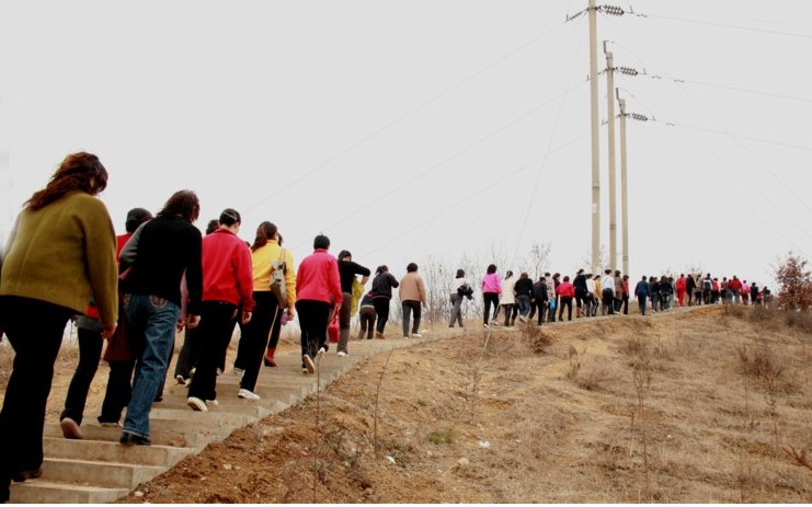 在狹窄的山道上,小心翼翼的逐隊而行。