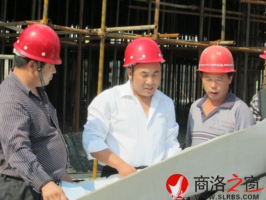 李進(jìn)文(中)在施工現(xiàn)場(chǎng)