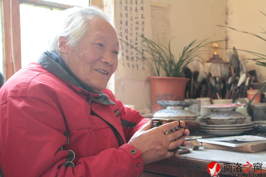 寒冬時節(jié),在商州南街,城隍廟對面一個普通的院落里,墻角一隅疏淡的竹子隨風(fēng)搖曳,幾株花木泛著綠意。掀開院子西邊小平房的門簾,一張巨大的畫案映入眼簾,畫案上墨跡斑駁,毛筆、畫碟、筆洗、紙張等書畫用具一一陳設(shè),兩個大書柜緊挨畫案。一張床,一個茶幾,一套沙發(fā),一把藤椅。滿頭銀發(fā)的李志賢老人坐在窗下,一手夾著煙卷,一手正翻看著字帖。