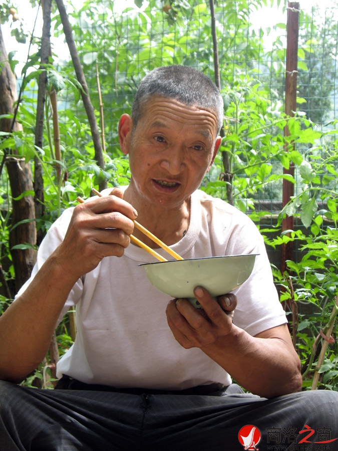 5月26日下午3點多,記者來到丹鳳縣棣花鎮賈塬村,尋訪賈平凹筆下的人物原型——劉高興。走進上書“剛正不阿”的門樓,一個五十多歲的漢子正端著個大碗,坐在樹影重疊的院子里吃白開水泡饃。見到有人進來,他站起來“呵呵”一笑,拉條板凳讓我坐下。杏黃荷綠,蝶舞蜂飛,采訪便在這樣的氣氛中開始了。