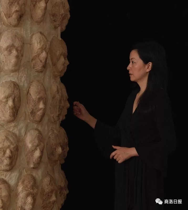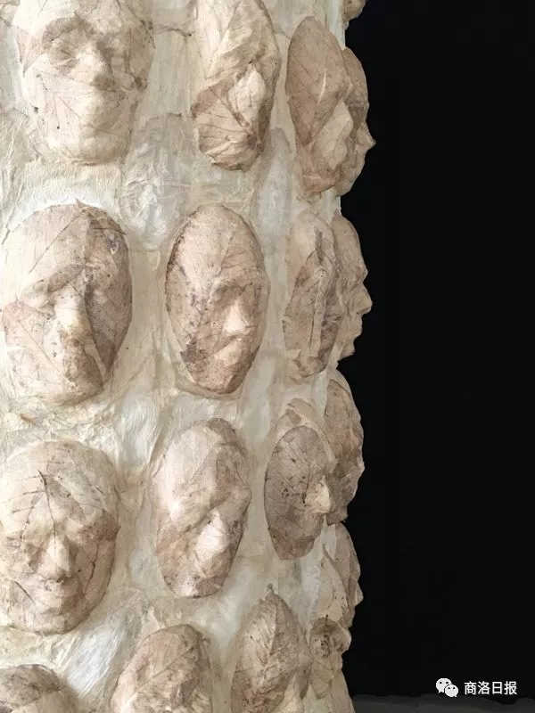 郭燕接受本報新媒體記者采訪時介紹,兩件裝置作品都用原生木漿紙和網狀的樹葉做成,一件由180張“人”的面孔組成的叫《眾生》,另外一件由133張面孔組成的兩米高的圓柱狀作品取名《輪回》,前后花了4個月時間。