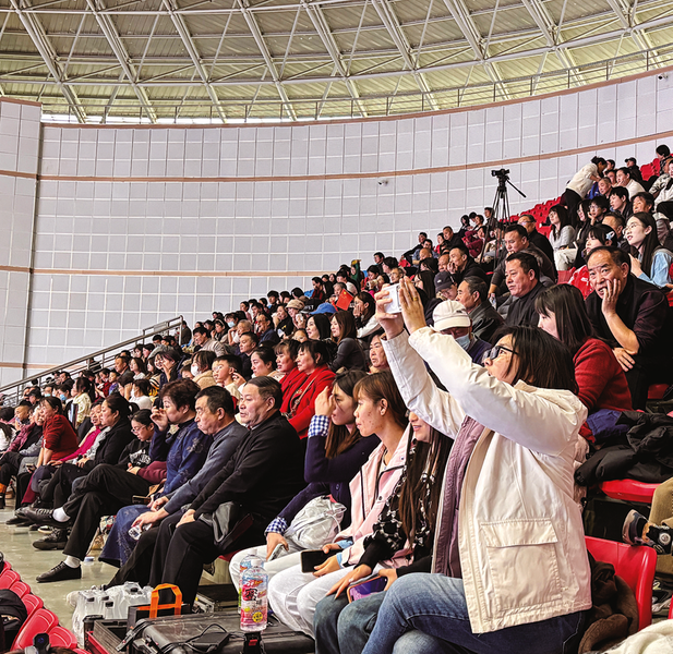 12月5日晚6時,開幕式尚未開始,市體育館已座無虛席。近千名觀眾早早入場等候,動感十足的開場音樂響起,當(dāng)身著各色隊服的運動員精神抖擻步入賽場時,全場頓時爆發(fā)出雷鳴般的掌聲。伴隨著莊嚴的國歌聲,6歲的祝依冉小朋友,用稚嫩卻無比堅定的聲音高聲跟唱,清澈的童聲與全場的歌聲交織,成為開幕式上最動人的瞬間,也讓這份對祖國的熱愛、對賽事的期盼,深深扎根在每個人心中。