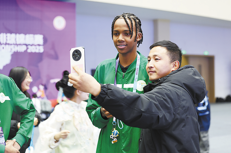 12月9日晚,“2025年U15世界中學(xué)生排球錦標(biāo)賽國(guó)家之夜”活動(dòng)在商洛市職業(yè)技術(shù)學(xué)院大學(xué)生活動(dòng)中心舉行,運(yùn)動(dòng)員與球迷合影。 (本報(bào)記者 石 磊 攝)