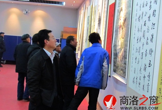 1月31日,由市委宣傳部、市人大常委會辦公室、市政協辦公室、市文聯、市委老干局等部門聯合舉辦的慶“兩會”迎新春書畫展在市群藝館開展。書畫展為期3天,共展出120多幅書畫作品,書畫家們以此向市三屆人大一次會議、市政協三屆一次會議勝利召開獻禮。(記者 李小龍 攝)