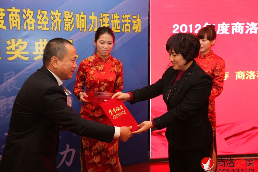 市委常委、宣傳部部長劉淑慧為2012年度商洛最具經濟影響力人物獎項獲得者頒獎。 (本組圖片攝影/方立)