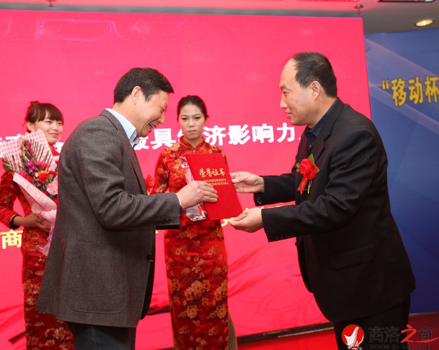 副市長(zhǎng)高健為2012年度商洛最具經(jīng)濟(jì)影響力人物獎(jiǎng)項(xiàng)獲得者頒獎(jiǎng)。
