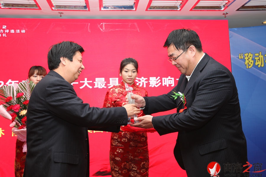 市政協副主席熊道宇為2012年度商洛最具經濟影響力人物獎項獲得者頒獎。