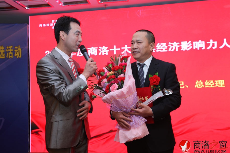 主持人現場采訪2012年度商洛十大最具經濟影響力人物獎項獲得者武興存。