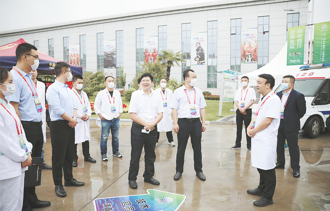 黨委書記朋雙成、院長李銀山代表醫院看望慰問商洛市中心醫院26名十四運會醫療保障工作人員。