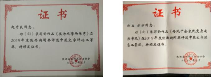 通過全體采編人員的不懈努力,商洛日報在2020年度新聞獎評選中獲得優異成績,其中本報記者方立、方方采寫的消息《丹鳳千余農民變身南京市民》,趙有良撰寫的評論《莫為觀摩而作秀》獲2019年度陜西新聞二等獎,本報記者南書堂、汪锳采寫的通訊《從“不堪行”到“變通途”》,本報記者趙有良、汪锳、賈書章采寫的通訊《一位鄉土作家的“農民課堂”》獲2019年度陜西新聞三等獎;《黃河明珠天鵝城》《山鄉婚禮記憶》等5件作品獲2019年度中國地市報新聞獎一、二、三等獎,《我市跨入“國家森林城市”行列》《全國最大的數字化益生元(菊芋)制造中心商州建成》等13件作品獲2019年度商洛新聞獎一、二、三等獎。100多篇報道被“學習強國”平臺及中、省主流媒體刊發推送。本報副總編、主任記者趙有良被陜西省新聞工作者協會授予“陜西省優秀新聞工作者”稱號,并入選陜西省2019年宣傳思想文化系統“六個一批”人才。