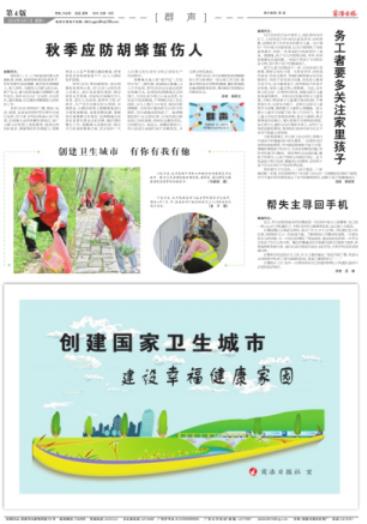 另外,三版通過《環保督查》 《健康教育》《創文進行時》等專題專欄,全面深入報道了我市科教文衛等方面的進展成就,展示了全市衛生、教育、科技事業發展碩果,有效發揮了普及科學知識的作用。
