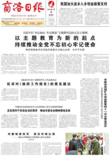 2020年,在中共商洛市委的堅強領導下,在市委宣傳部的精心指導下,商洛日報堅持以習近平新時代中國特色社會主義思想為指導,以學習宣傳貫徹黨的十九大、十九屆五中全會精神和習近平總書記來陜考察重要講話重要指示精神為主線,緊緊圍繞全市中心工作,著力強化新聞輿論引導力、報業經營競爭力和新聞隊伍影響力,全力講好商洛好故事、傳播商洛好聲音,為推動全市經濟社會高質量發展提供了強大的精神動力和輿論支持。