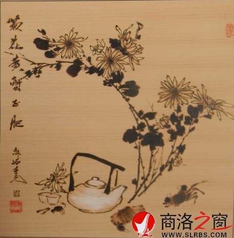 烙畫是中國傳統畫,也是世界珍稀畫種之一。烙畫亦稱烙花、燙花、火筆畫、"火針刺繡",它是利用碳化原理,通過控溫技巧,不施任何顏料以烙為主套彩為輔的表現手法,在竹木、宣紙、絲絹等材料上勾畫烘燙作畫,巧妙自然地把繪畫藝術的各種表現技術與烙畫藝術融為一體,形成自己的藝術風格。