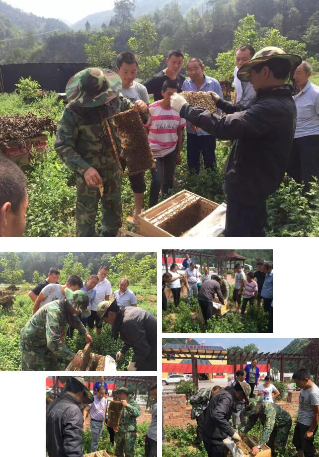 此次活動旨在解決中蜂養(yǎng)殖戶生產(chǎn)生活中遇到的實際技術難題,幫助農(nóng)民提升使用新技術、新成果的能力,增加經(jīng)濟收入,達到脫貧致富的目的。培訓會內(nèi)容主要分為五項,第一項由花瓶子鎮(zhèn)副鎮(zhèn)長張丹宏明確培訓要求,第二項由丹鳳中蜂科養(yǎng)協(xié)會劉建華會長對中蜂科養(yǎng)日常管理進行培訓,第三項由協(xié)會張?zhí)烀窀睍L對分蜂以及蜂王保護技巧進行現(xiàn)場講解,第四項由協(xié)會技術指導員許建斌對黑蜂隔離技術進行現(xiàn)場演示,最后由參會人員到丹鳳縣煙草專賣局駐油房坪村第一書記馮凱的蜂場進行實地觀摩,養(yǎng)蜂協(xié)會專家對參會人員提出的問題進行現(xiàn)場解答。