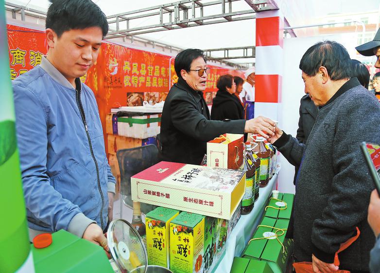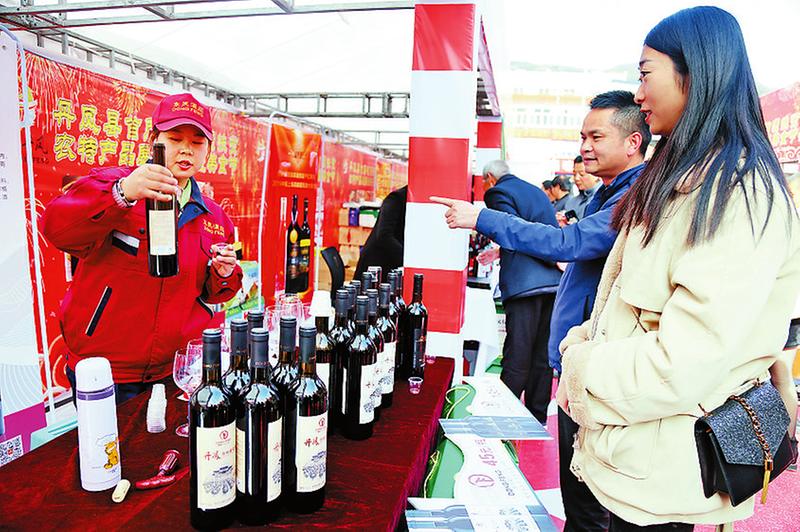 豐富多樣、各具特色的農(nóng)特產(chǎn)品齊聚一堂,健康美味、包裝新穎,引得顧客駐足品嘗。棣花鎮(zhèn)、武關(guān)鎮(zhèn)、巒莊鎮(zhèn)、竹林關(guān)鎮(zhèn)等地的20多家涉農(nóng)帶貧企業(yè)、合作社展示出了他們的農(nóng)特產(chǎn)品:香醇可口的葡萄酒、沁人心脾的綠茶、美味筋道的魔芋、營養(yǎng)滋補(bǔ)的蜂蜜……不少游客在品嘗之后,欣喜地帶走了心儀的農(nóng)特產(chǎn)品。