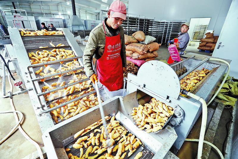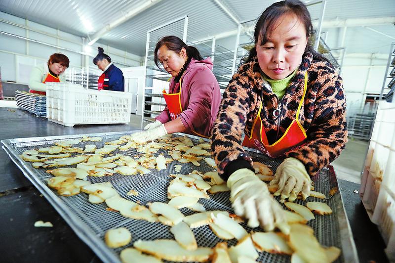 在丹鳳縣良種天麻產業園,一輛輛滿載天麻的卡車開入園區,工人們卸下一袋袋“土黃金”送入天麻產品加工車間。在成品車間,只見藥用天麻切片、天麻掛面、精細天麻粉和天麻酒等系列深加工產品放滿車間。