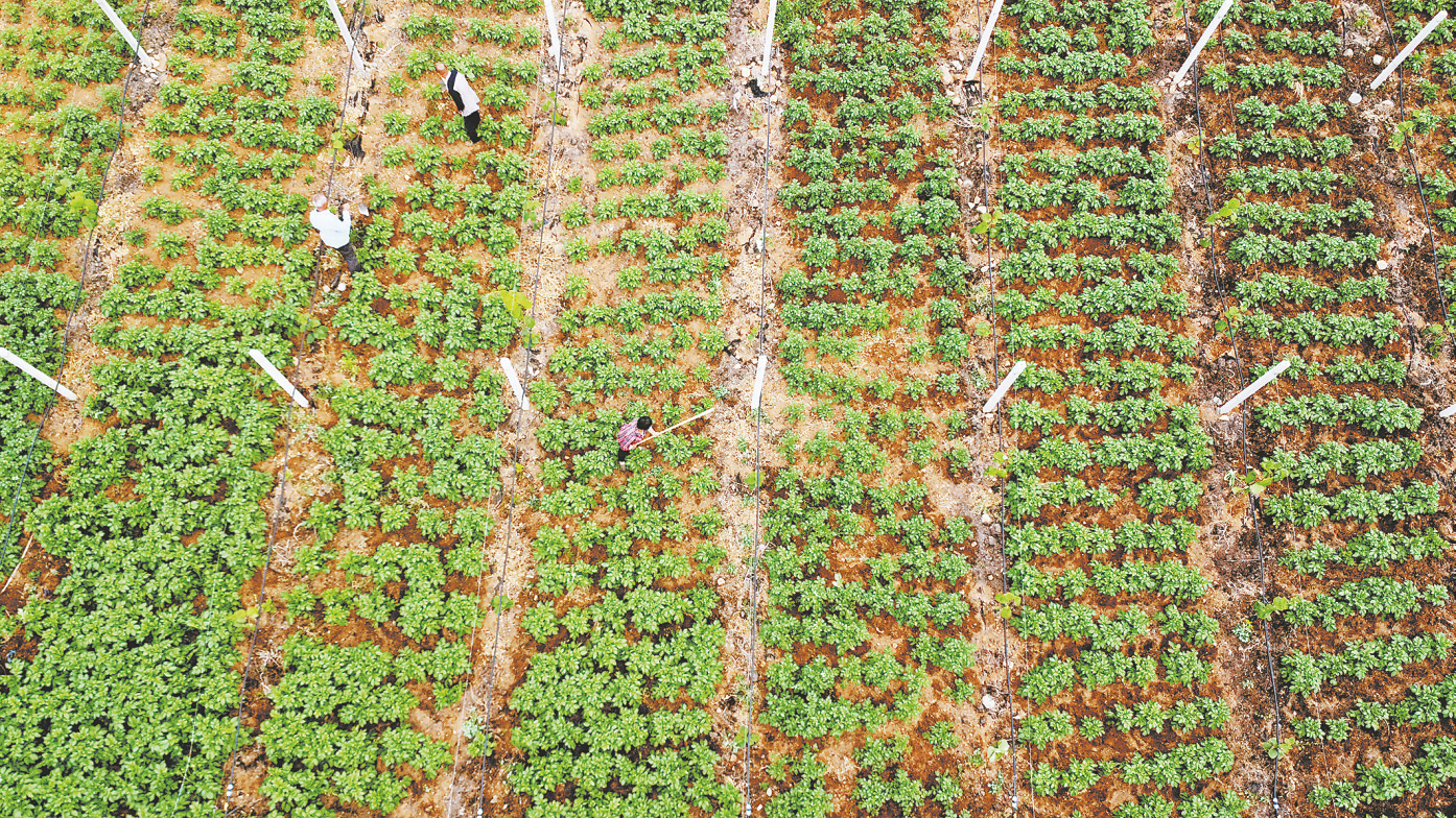 村民在狝猴桃基地套種洋芋