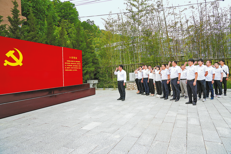 在“七一”建黨節(jié)即將到來之際,為慶祝建黨102周年,傳承黨的優(yōu)良傳統(tǒng),激勵黨員干部凝心聚力、提振精神,連日來,我市各地各部門黨組織紛紛開展形式多樣、豐富多彩的慶祝活動。圖為丹鳳縣竹林關(guān)鎮(zhèn)機(jī)關(guān)黨支部組織全體黨員重溫入黨誓詞。(本報通訊員 雷明欣 攝)