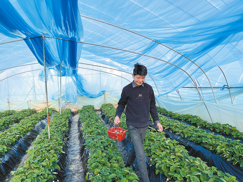 草莓采摘園的負責人張志坤談起自家的草莓,話立刻多了起來:“我們這個地方離縣城近,很多人都喜歡周末帶孩子來這里轉(zhuǎn)轉(zhuǎn),體驗采摘樂趣和田園生活,所以每年的草莓都是供不應求。今年我們種了9棚草莓,約20畝。有紅顏、紅玉、章姬3個品種,都是口感極好的熱門品種。我們還在草莓園里養(yǎng)了蜜蜂為草莓授粉,以提高草莓的質(zhì)量和產(chǎn)量。”