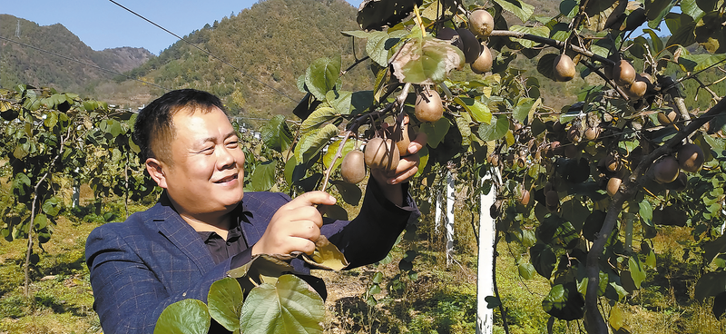 11月3日上午,記者在土門村狝猴桃基地見到負責人劉偉時,他正帶著留守婦女采摘狝猴桃。看著豐收的狝猴桃,劉偉露出了欣慰的笑容。