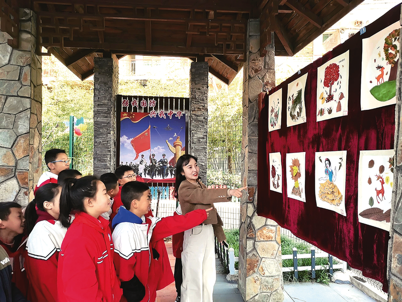 近日,丹鳳縣第五小學(xué)組織學(xué)生開展第三屆樹葉粘貼畫主題實踐活動,各班學(xué)生積極參與,讓學(xué)生在創(chuàng)作中獲得樂趣和知識,激發(fā)了學(xué)生的創(chuàng)造力,豐富了他們的校園生活。 (本報通訊員 高 鴻 攝)
