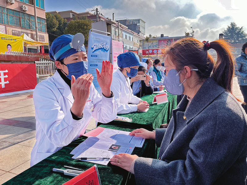 3月2日,在丹鳳縣中心廣場上,一場“愛耳日”義診活動現場人頭攢動,縣中醫醫院耳鼻喉科主任路莉的面前,排了長長的隊伍,她耐心傾聽老人的問題,并給出專業的建議。