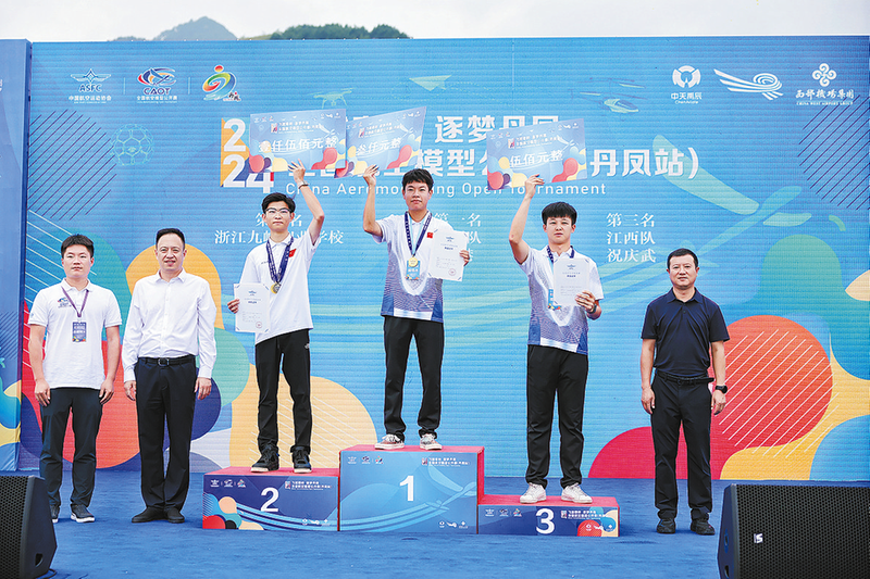 經(jīng)過(guò)激烈角逐,在手?jǐn)S滑翔機(jī)直線距離飛行A9項(xiàng)目中,丹鳳縣思源實(shí)驗(yàn)學(xué)校一隊(duì)李俊邑、丹鳳縣初級(jí)中學(xué)王戈陽(yáng)、丹鳳縣思源實(shí)驗(yàn)學(xué)校一隊(duì)李易恒分別獲得第一、二、三名;在橡筋動(dòng)力飛機(jī)親子賽項(xiàng)目中,陜西西安叮咚手作王嘉鑠、丹鳳縣第五小學(xué)屈妍辰、丹鳳縣第一小學(xué)馮翔分別獲得第一、二、三名;在帶降火箭(A6)項(xiàng)目中,丹鳳縣思源實(shí)驗(yàn)學(xué)校二隊(duì)李昊彧、丹鳳縣思源實(shí)驗(yàn)學(xué)校二隊(duì)李懿軒、丹鳳縣第三小學(xué)李文博分別獲得第一、二、三名;在遙控紙飛機(jī)繞標(biāo)(P5M)項(xiàng)目中,浙江九峰職業(yè)學(xué)校王梓丞、廣東契科模型羅致、廣東契科模型黃嘉麗分別獲得第一、二、三名;在遙控固定翼花式飛行(P3M)項(xiàng)目中,江西隊(duì)許港、浙江九峰職業(yè)學(xué)校王梓丞、江西隊(duì)祝慶武分別獲得第一、二、三名。