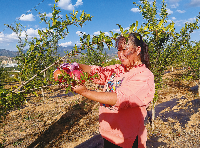 村民采摘成熟的石榴
