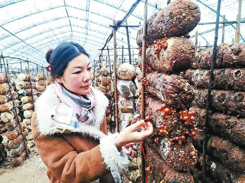 王婷檢查滑子菇長勢(shì)