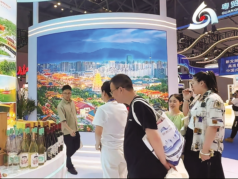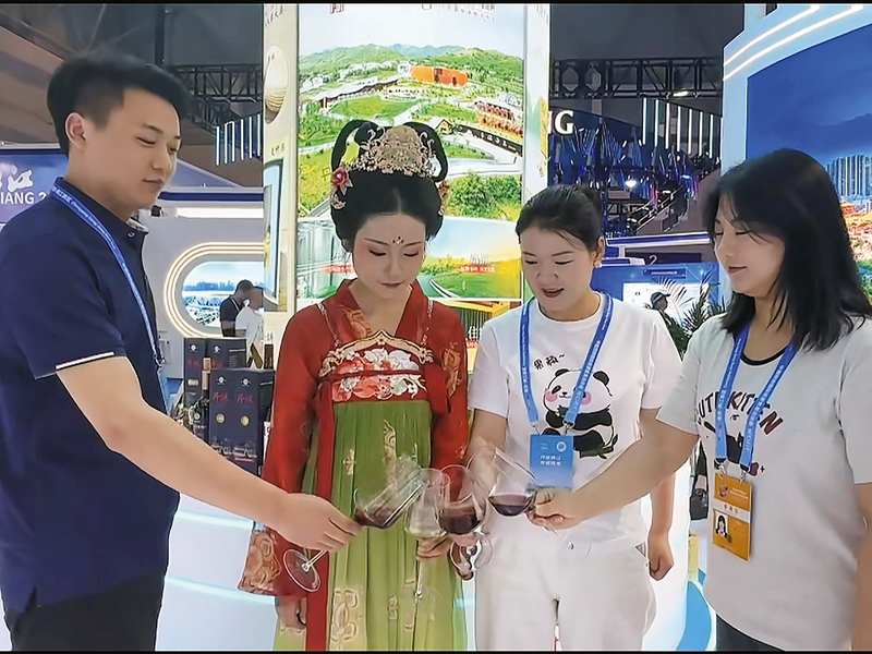此次參展期間,丹鳳酒莊精心打造了視覺盛宴:醇香品鑒區里,10多款佳釀在醒酒器中綻放琥珀光澤;數字展示屏前,葡萄園四季流轉的影像與百年酒窖的斑駁光影交相輝映;云端直播間內,主播手持“大芳”牌酒標復刻版娓娓道來。參展期間,丹鳳酒莊通過線上線下聯動奏響交響曲——現場接待近千名客商品鑒洽談,云端直播間收獲超10萬次互動,創新營銷模式實現銷售額突破12萬元。