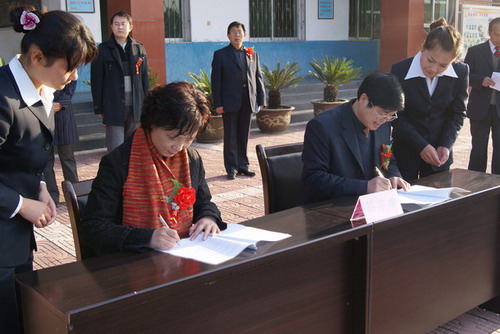 上海晨訊科技集團副總裁唐榮榮與縣職教中心主任劉江簽訂合作協(xié)議書