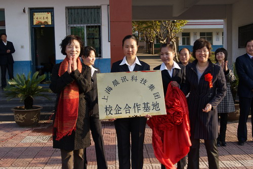 上海晨訊科技集團副總裁唐榮榮一行、商南縣人民政府副縣長殷延青、縣政府機關黨委書記田洪、縣教育體育局局長柯昌印、縣職教中心主任劉江及學校有關領導參加揭牌暨簽字儀式