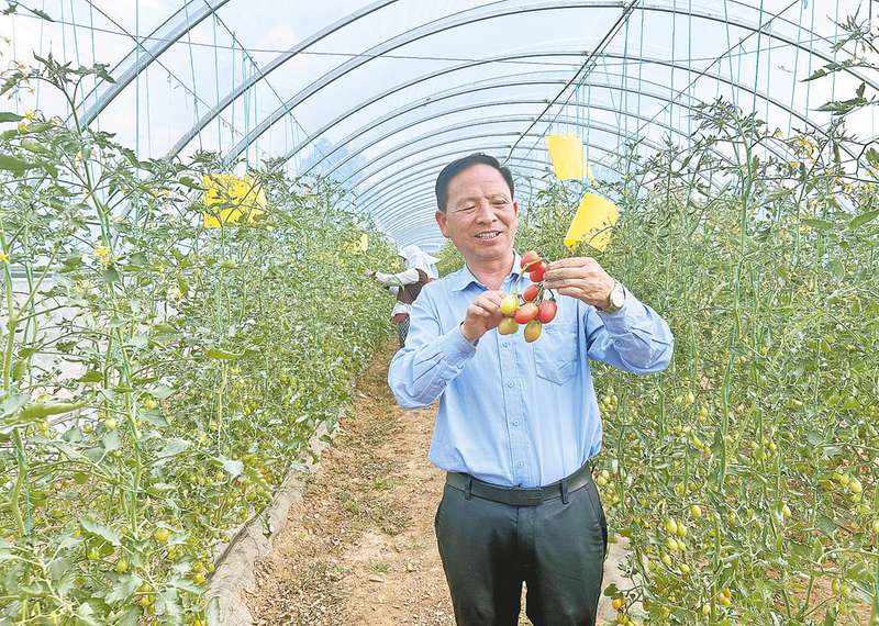 在四聯村放心菜基地,何毅向記者展示即將上市的高品質圣女果。