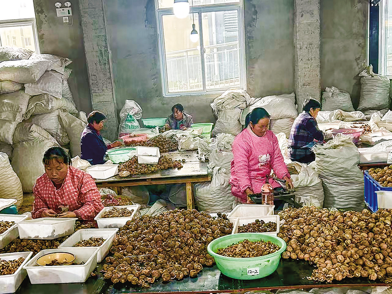 在初加工區(qū),工人正在對核桃進行精細分揀。來自洛源街社區(qū)的張彩云手指翻飛,熟練地將核桃按品級分裝。“在這里上班,既學到了技術,又能照顧家里,別提心里有多美了。”她笑著說。這個建在群眾家門口的加工點,目前已穩(wěn)定帶動60多名當地群眾實現就業(yè)增收。
