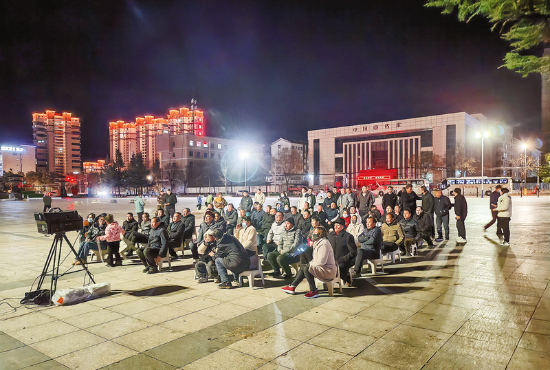 11月18日至19日,2025年度全市農村公益電影放映技術與服務培訓班在洛南舉辦。圖為11月18日晚,在洛南縣城關街道劉澗社區開展的放映觀摩活動。