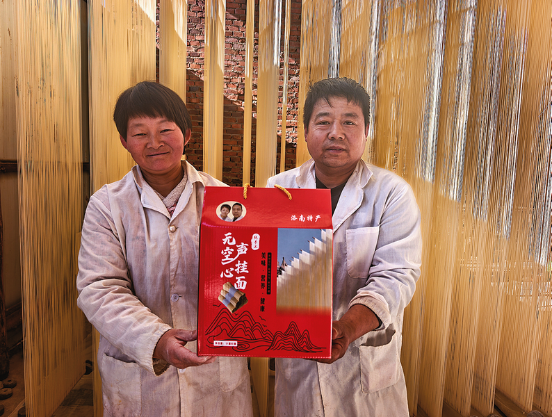 張益和郭軍盈緊跟時代發展,制作包裝盒,把自己的掛面起名為“無聲空心掛面”。
