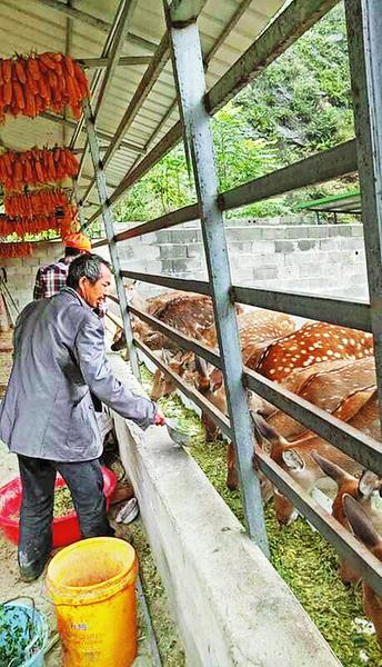 有人提出疑問:一個羸弱貧困的一家人在短時間內能夠脫貧,吃的是什么神丹妙藥?就這家而言,答案很明顯。一是緊緊抓住國家實施“脫貧攻堅”這一千載難逢的最佳機遇,為興辦產業“輸血”。從享受政府擔保貼息,國家產業專項補貼和資金幫扶政策,到社會各界聚力包扶。如:商南縣朝陽集團雨力潔公司、清油河電管所、試馬上蒼鹿業公司等單位采取企業賒本讓利的方式,從人力、物力、財力、免費技術指導和培訓上鼎力相助,總計從中獲利達25萬余元。解決了辦場資金短缺的燃眉之急;二是通過“借鹿還茸”和“售茸見利”的模式不僅以鹿茸抵清了借鹿的成本,而且還清了部分的外債,為自身產業“造血”。這是靠勤勞的雙手辦好產業,短期已初見成效。今年7月的一天,有位在鹿場看鹿的熟人開玩笑地說:“明龍,鹿喂得膘肥體壯的,你咋瘦了呢?”他風趣地說:“有錢難買老年瘦啊!”并接著說:“現在干啥都不容易呀!為了這群鹿,我春夏兩季天天忙于上山打構葉、割青草;秋冬季節日日上山撿樹葉,到處收花生桿、紅薯藤儲存粗飼料;晴天坡上干,雨天加工飼料,每天晚上10點前從沒有睡過覺,好在當今有國家好的政策支撐,有干部傾力幫扶,再苦再累,我也心甘情愿啊!看著這群鹿的長勢,說明了勤勞的汗水沒有白流。”三是靠以辦好主體產業的同時,采取與中、短期見效快的項目相結合的方式,為興辦產業“補血”。如:養雞、養兔、養母豬、爭取公益性崗位、短期勞務輸出等辦法拓寬增收渠道,增加收入。通過為產業“輸血”“造血”“補血”,才圓了百姓的脫貧夢。