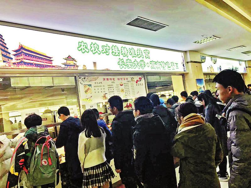 去年11月,長安大學進一步為商南縣提供支持,在該校渭水校區“樹惠園”學生食堂,提供100多平方米區域開設一個食堂端口,即“商南縣扶貧窗口”。在這個扶貧窗口,經營者專門用商南縣的農特產品作食材,做出具有商南風味的菜肴。運營后,有時一天的營業額高達7000元,不到50天,營業額就突破了20萬元。開辦這一食堂端口有力促進了該縣農特產品的銷售,而且做出了“商南味道”,提升了商南縣農特產品的知名度。