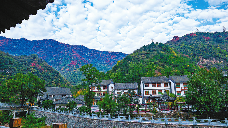 走進(jìn)金絲峽,漫天的飛鳥于空中盤旋飛舞,古色古香的亭臺(tái)樓閣與紅綠交織的山巒相映成趣。流云浮現(xiàn),光影攢動(dòng),金絲峽像一位妝容精致的古典少女,吸引著來(lái)自各地的游客。