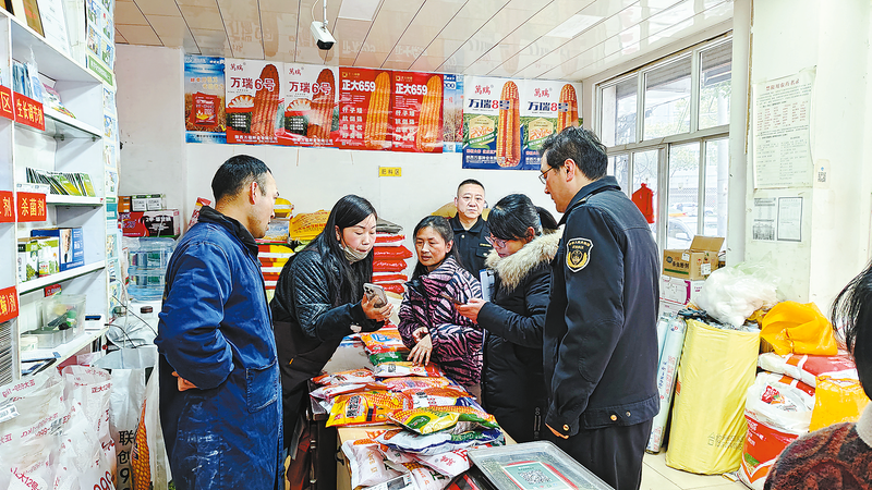 近期,商南縣農(nóng)業(yè)農(nóng)村局組織農(nóng)業(yè)執(zhí)法人員對(duì)全縣農(nóng)資市場(chǎng)常態(tài)化開(kāi)展農(nóng)資執(zhí)法檢查,對(duì)重要農(nóng)資產(chǎn)品進(jìn)行檢查,有效凈化了全縣農(nóng)資市場(chǎng)環(huán)境,維護(hù)了廣大農(nóng)民群眾的合法權(quán)益,為春季農(nóng)業(yè)生產(chǎn)提供了有力保障。 (本報(bào)通訊員 代緒剛 攝)