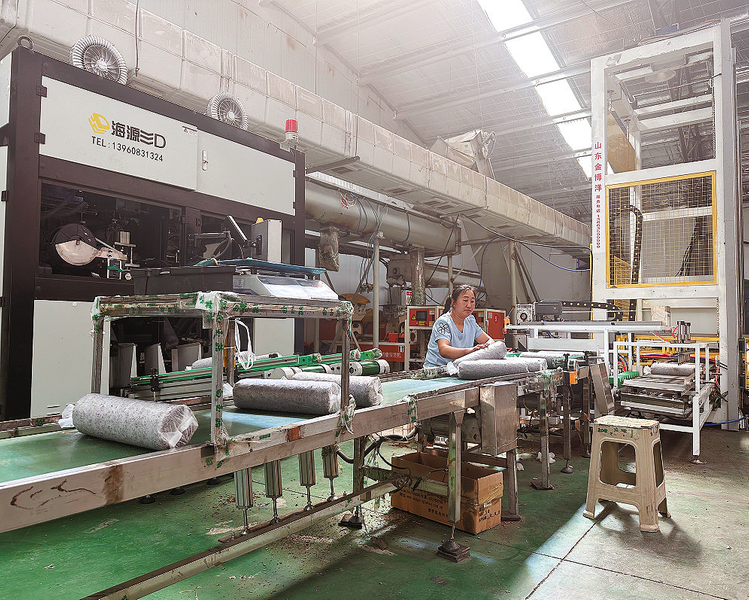 在自動(dòng)裝袋區(qū),工人范海蘭正專(zhuān)注地盯著傳送帶上已裝袋的菌棒,不時(shí)用手翻動(dòng)調(diào)整,確保菌棒有序擺放在架子上,隨后由叉車(chē)運(yùn)往高溫滅菌區(qū)。“我就是附近的村民,每天騎車(chē)幾分鐘來(lái)上班,在廠里工作兩年了。這里是計(jì)件工資,多勞多得,平均每天能掙100多元。”范海蘭笑著說(shuō)。