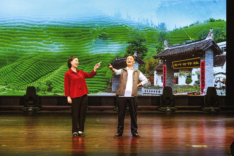 據(jù)了解,該小戲劇情以村黨支部書記帶領(lǐng)村民發(fā)展茶產(chǎn)業(yè)為背景,塑造了樸實(shí)、平實(shí)、真實(shí)的基層干部形象,歌頌了村黨支部書記用智慧、熱情和汗水,一心一意帶領(lǐng)群眾走出一條以茶致富之路的形象。