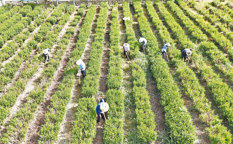 不遠處的茶園里,66歲的范春梅正彎著腰麻利地鋤草,“我家推門就是茶園,我常年都在茶園務工,采茶、修剪、除草、施肥樣樣都干。”她掰著指頭算起收入賬,“春季采茶旺季一天能掙200元,閑時管護茶園一天80元,一年下來穩穩當當掙1.5萬元。”