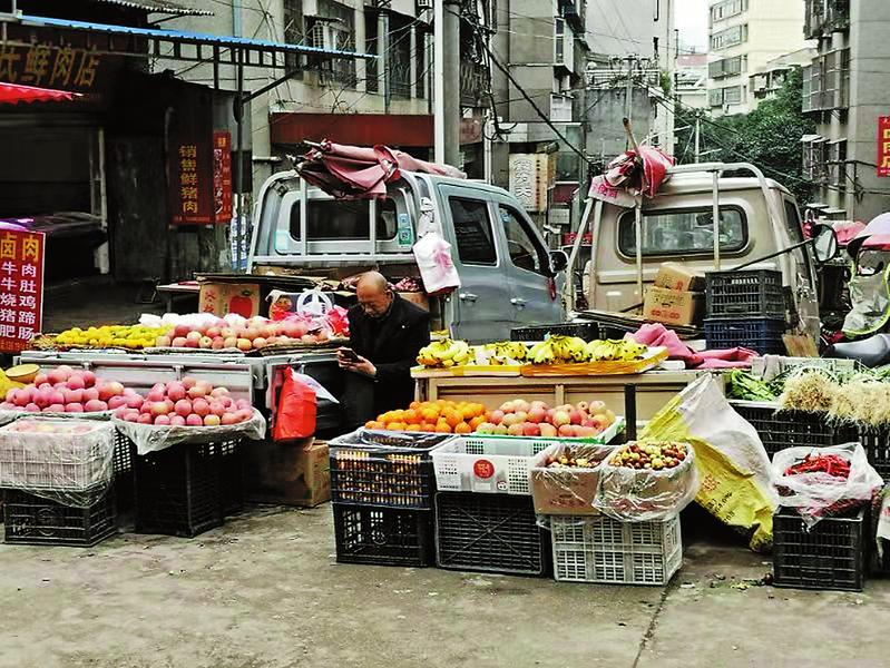 經常有市民議論,造成這條街道不通暢的原因,這兩車裝著水果的車所形成的賣水果攤位成主因,我們就不明白,這霸道的攤位怎么就沒人過問,沒人管理?讀者 張本來口述 金平 整理